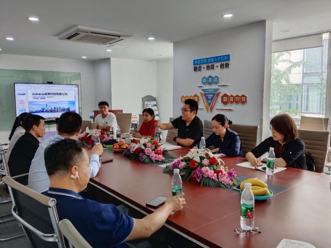 为深入推进产教融合,强化师生实践能力,拓宽学生就业渠道,进一步提升就业质量,2025年7月3日,经济管理学院党委书记李峰、副院长李海萍、赵欣娜等一行9人赴北京安豆管理咨询有限公司(简称“安豆咨询”)开展校企合作洽谈,安豆咨询的主要负责人贾奋明及各部门骨干进行了热情接待。会计系、工商管理系、信息管理系主任、学院校企合作专项负责人和骨干教师代表参加了座谈。