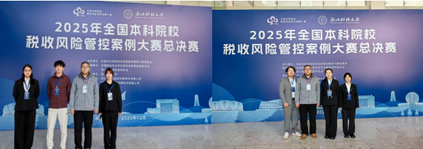 12月,全国本科院校税收风险管控案例大赛全国总决赛在浙江财经大学落幕。在王永哲、徐岭、刘一涛等老师的精心指导下,我校两支参赛团队延续分区赛良好势头,紧扣赛题运用前沿税收理论与专业分析工具,深度剖析复杂商业场景涉税风险,设计出合规严谨、兼具创新与实操价值的风险管控方案;汇报答辩环节,队员们思路清晰、从容作答,尽显专业素养与团队风采。最终两支队伍双双斩获全国总决赛三等奖。