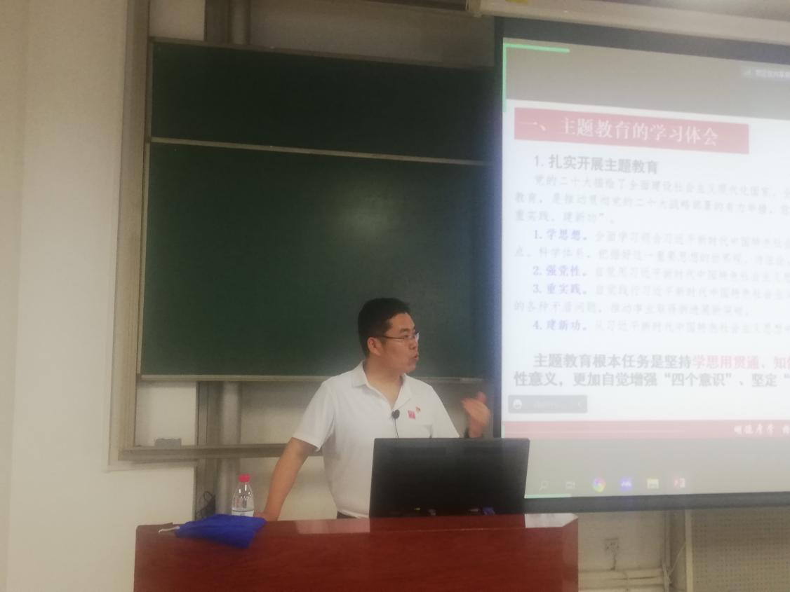 6月16日,刘践丰副书记以《坚定理想信念,争做新时代好青年》为题给学生第四党支部党员讲授专题党课。