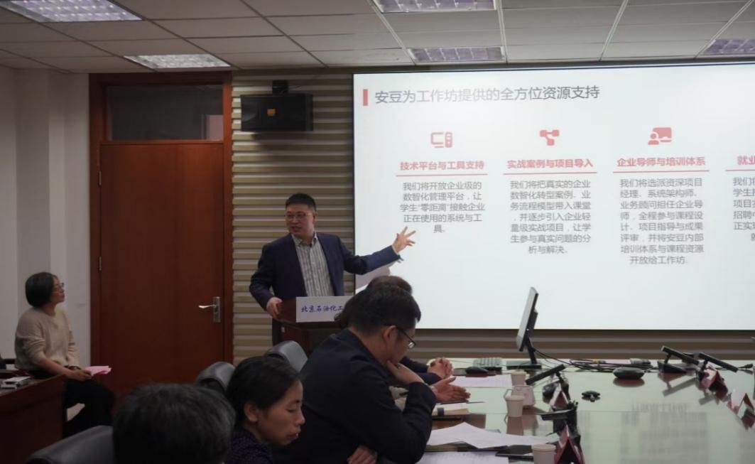 安豆公司高校合作部总监石永屹随后对项目总体规划及实施方案做了详细的介绍,使学院师生对合作项目的实施路径更为清晰。