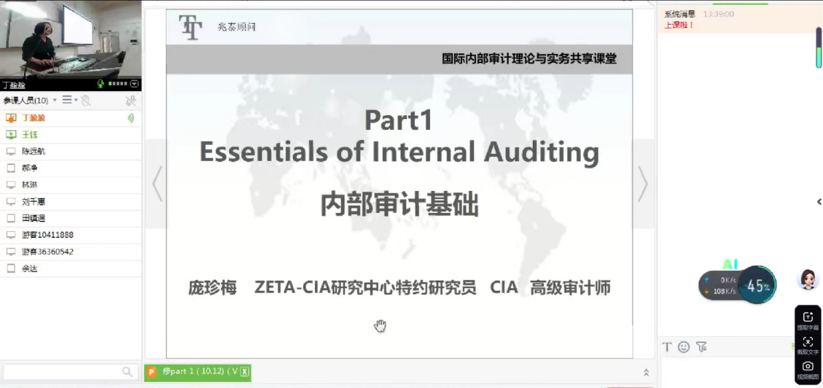 此次线上共享课堂的顺利开展,对经济管理学院审计学研究生的培养具有特别意义。课程将理论知识、职业考试与实务要求有机结合,不仅帮助学生构建了内部审计的基础知识体系,更培养了其职业思维与专业素养。