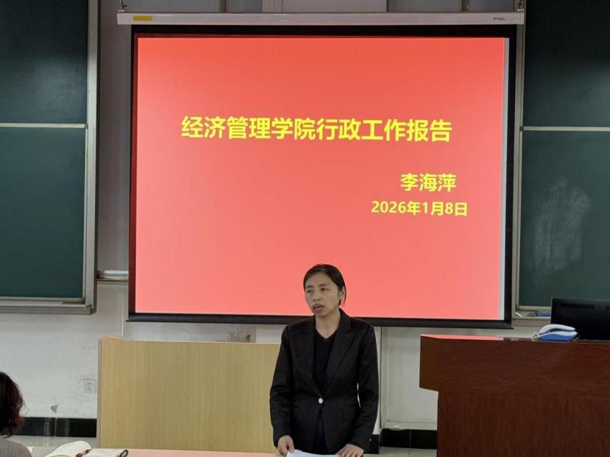 大会听取并审议通过了经济管理学院院长李海萍同志所作的行政工作报告及经费报告。她在报告中全面回顾了学院过去一年在教育教学改革、学科建设、人才培养、科研创新、队伍建设等方面取得的成绩,分析了当前发展面临的机遇与挑战,对“十五五”开局重点工作进行了部署。