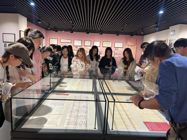 在讲解员的介绍下,一幅幅泛黄的家书手稿映入眼帘,它们静静地躺在展柜中,却仿佛在低语,讲述着过去的故事。从烽火连天的战争年代到和平建设的峥嵘岁月,一封封家书承载着亲人间深深的思念与牵挂,也见证了中华民族由苦难走向辉煌的壮丽历程。各位党员、学生代表仔细观摩展出的各个时期的家书、手稿等珍贵资料,了解一封封家书背后的历史故事,切身感受到中国共产党人和革命志士熠熠生辉的信仰之光,感悟到了先辈们的革命精神和家国情怀。