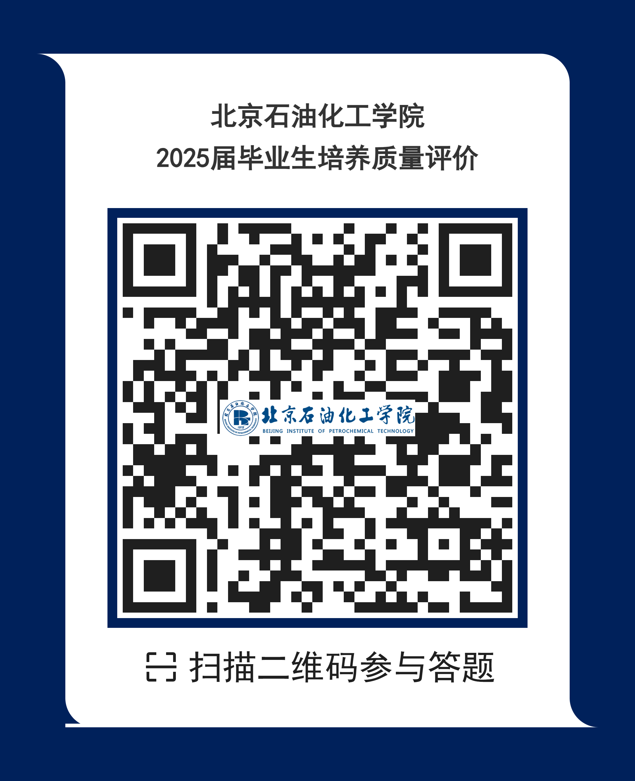 (三)评价方式:问卷采用在线答题方式进行,答题入口将通过邮件或短信发送给各位毕业生,同时可扫描下图二维码参与答题。