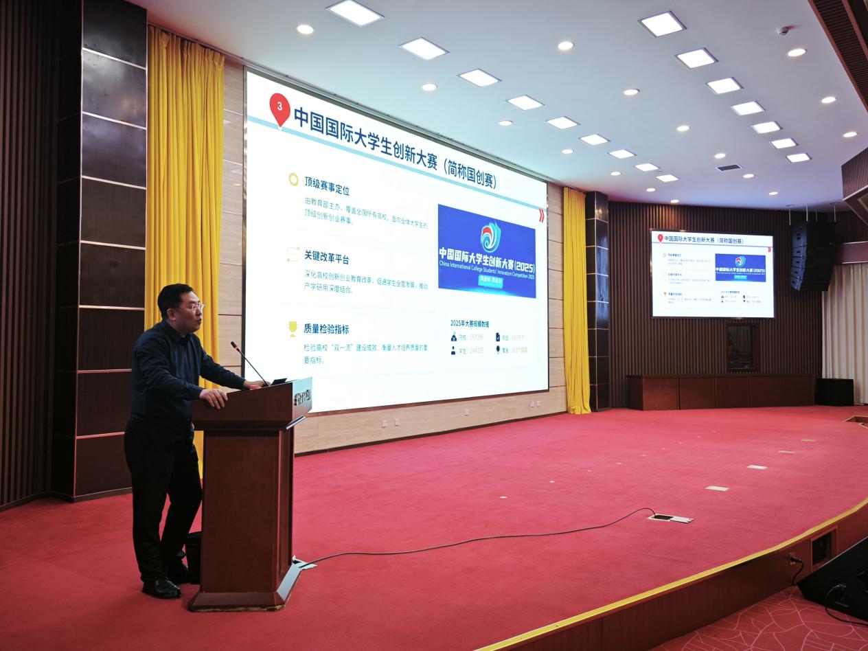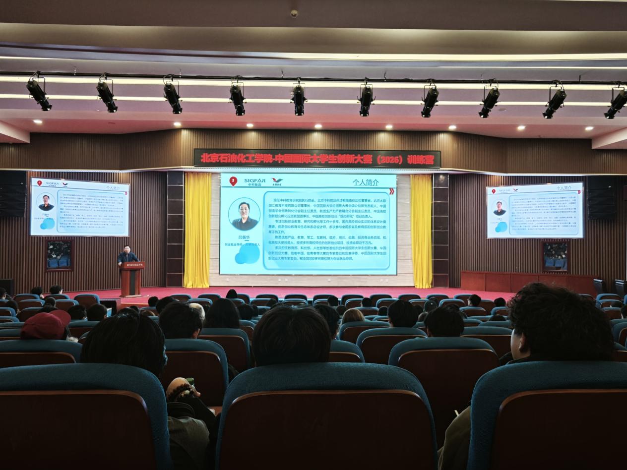 3月17日下午,教务处邀请北京中科致远科技有限责任公司董事长、中国国际大学生创新大赛资深专家闫循华举行了北京石油化工学院中国国际大学生创新大赛(2026)训练营第一讲——备赛策略培训。此次培训在致远讲堂举行,教务处解建利老师作开场介绍,培训现场座无虚席,受到学校师生的广泛关注。