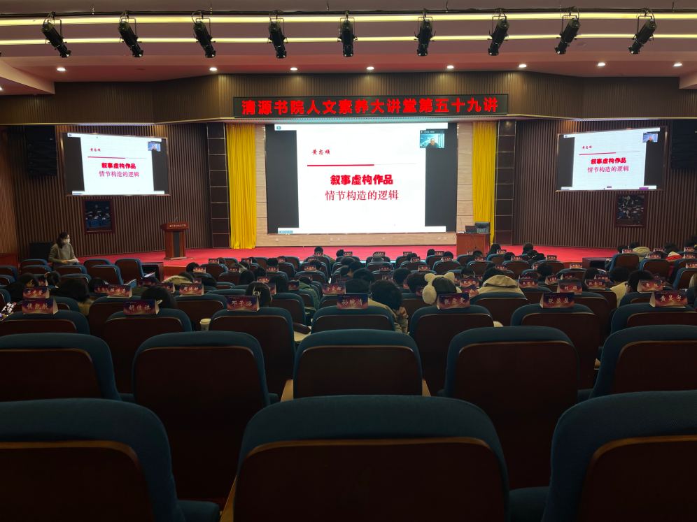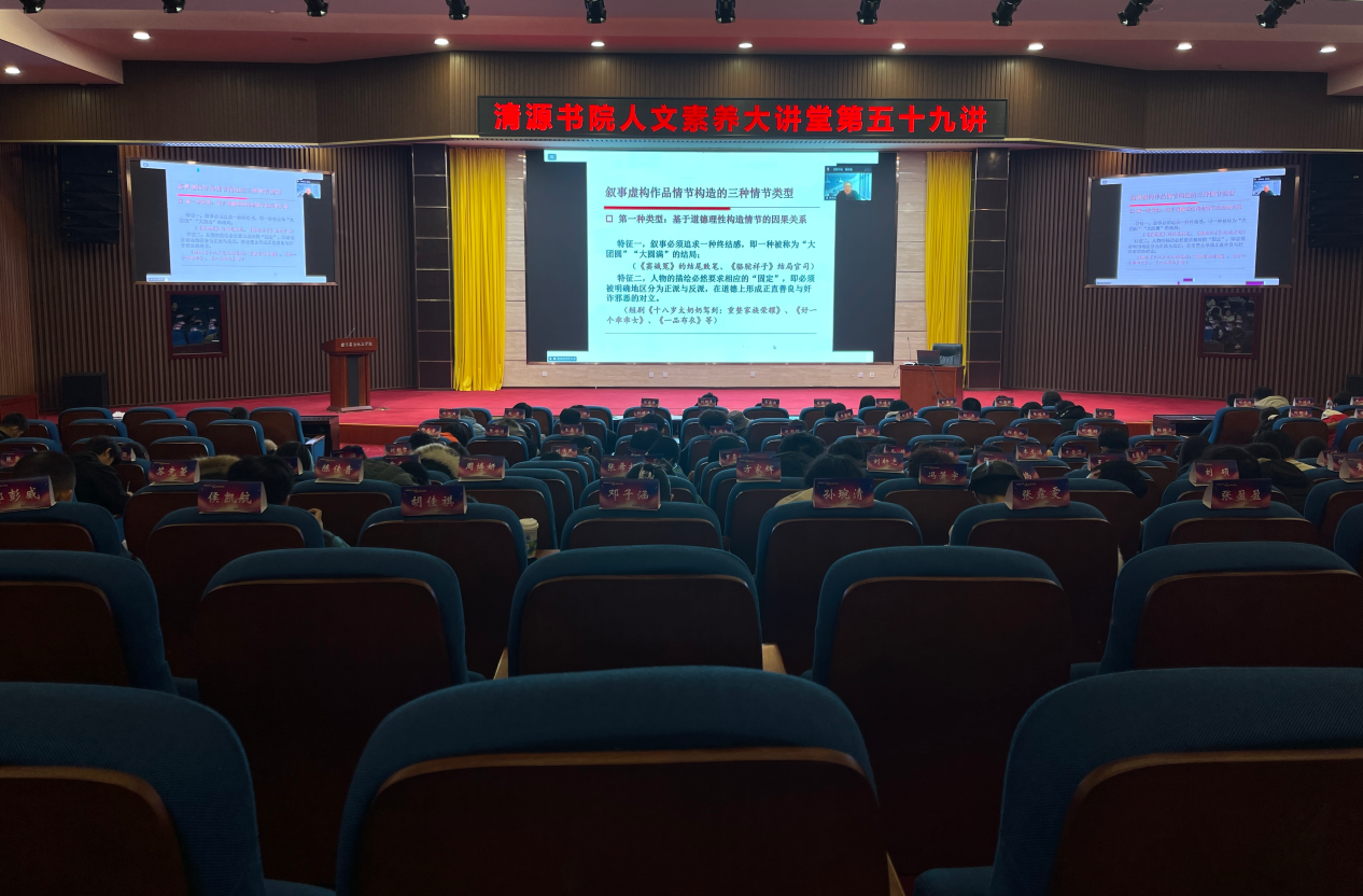 探究叙事文本结构密码,领悟情节构造艺术奥秘。12月4日晚7点,清源书院人文素养大讲堂在我校清源校区致远讲堂成功举办今年系列讲座的第九讲(总第59讲)。东莞理工学院文学院黄忠顺教授应邀为我校师生作了题为《叙事虚构作品情节构造的逻辑》的专题讲座。讲座由人文社科学院杨荣祥教授主持,我校150余名师生在致远讲堂聆听了本次讲座。