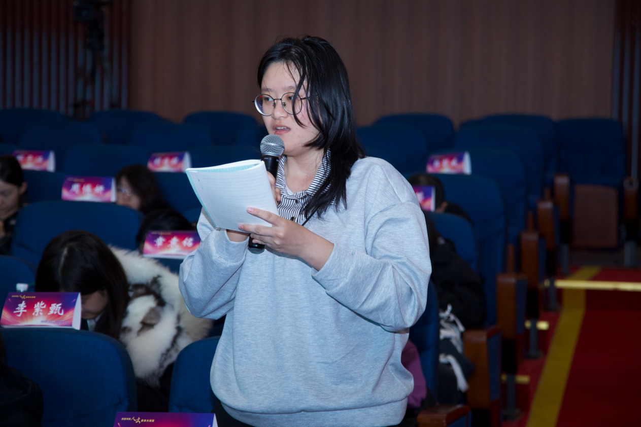 在随后的互动环节中,同学们踊跃提问,围绕《聊斋》中的恐怖元素、中西方恐怖叙事比较等话题展开交流,李教授一一作出细致深入的解答。