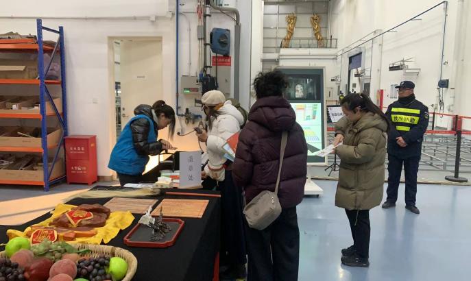 整体园区内,丁硕同学全程跟随讲解员,配合完成讲解辅助工作;第二展区在丁禺疆老师指导下,李怡扬、杨铭同学克服现场低温环境,承担盖章、服装展示及观众分流引导工作,优化游览体验。