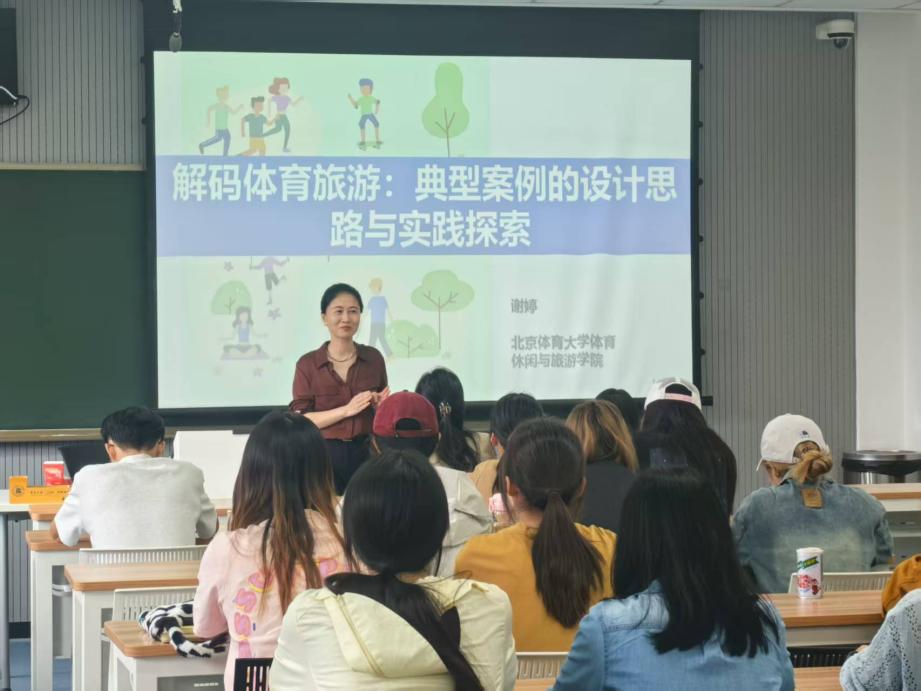 2025年9月22日下午,人文社科学院在主楼2301教室顺利举办 《解码体育旅游:典型案例的设计思路与实践探索》专题讲座,为会展与旅游专业建设探寻学科交叉融合新路径。讲座特邀请北京体育大学体育休闲与旅游学院副教授、我院优秀校友谢婷返校主讲,旅游与会展系专业老师、学生参加了讲座。