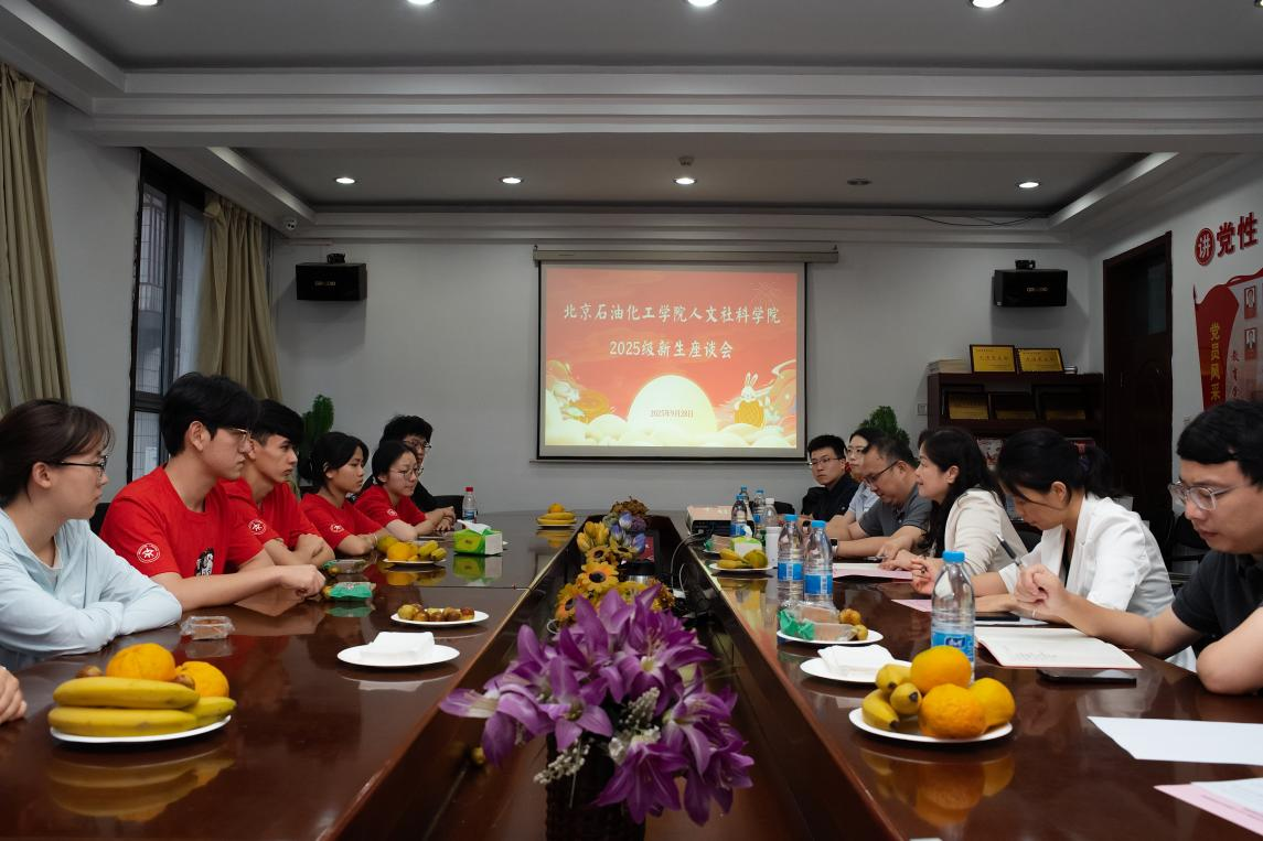 金秋送爽,丹桂飘香。在中华民族传统节日中秋节来临之际, 9月28日,人文社科学院在房山校区组织2025级新生座谈会。学院党委书记王荣霞,党委副书记兼副院长郑影,办公室主任鲁爱梅,辅导员朱明、窦铮、王峥、马胜凯与学院十余名非京籍学生代表欢聚一堂,共话中秋情思,共聊大学成长,现场暖意融融、笑语不断。