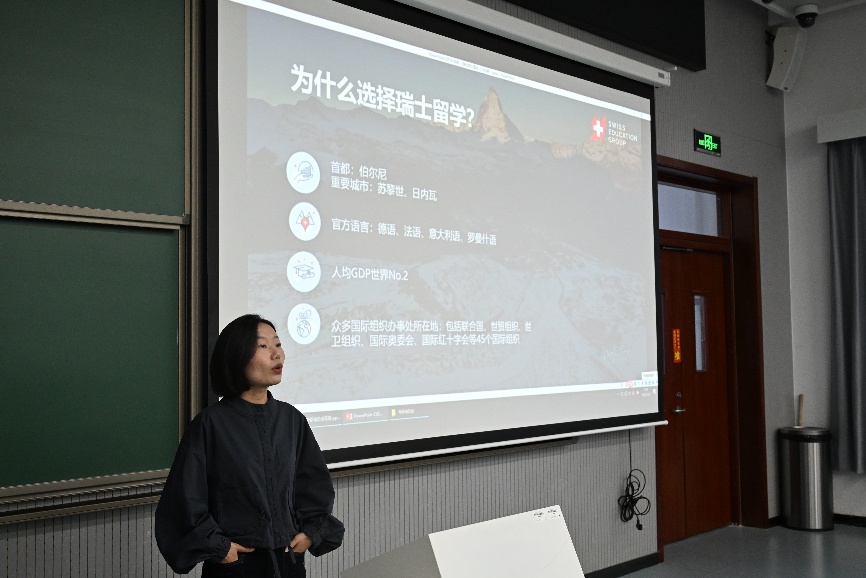李丞杰介绍了中瑞留学项目的优势、申请流程及发展前景,为学生提供了更多升学选择。