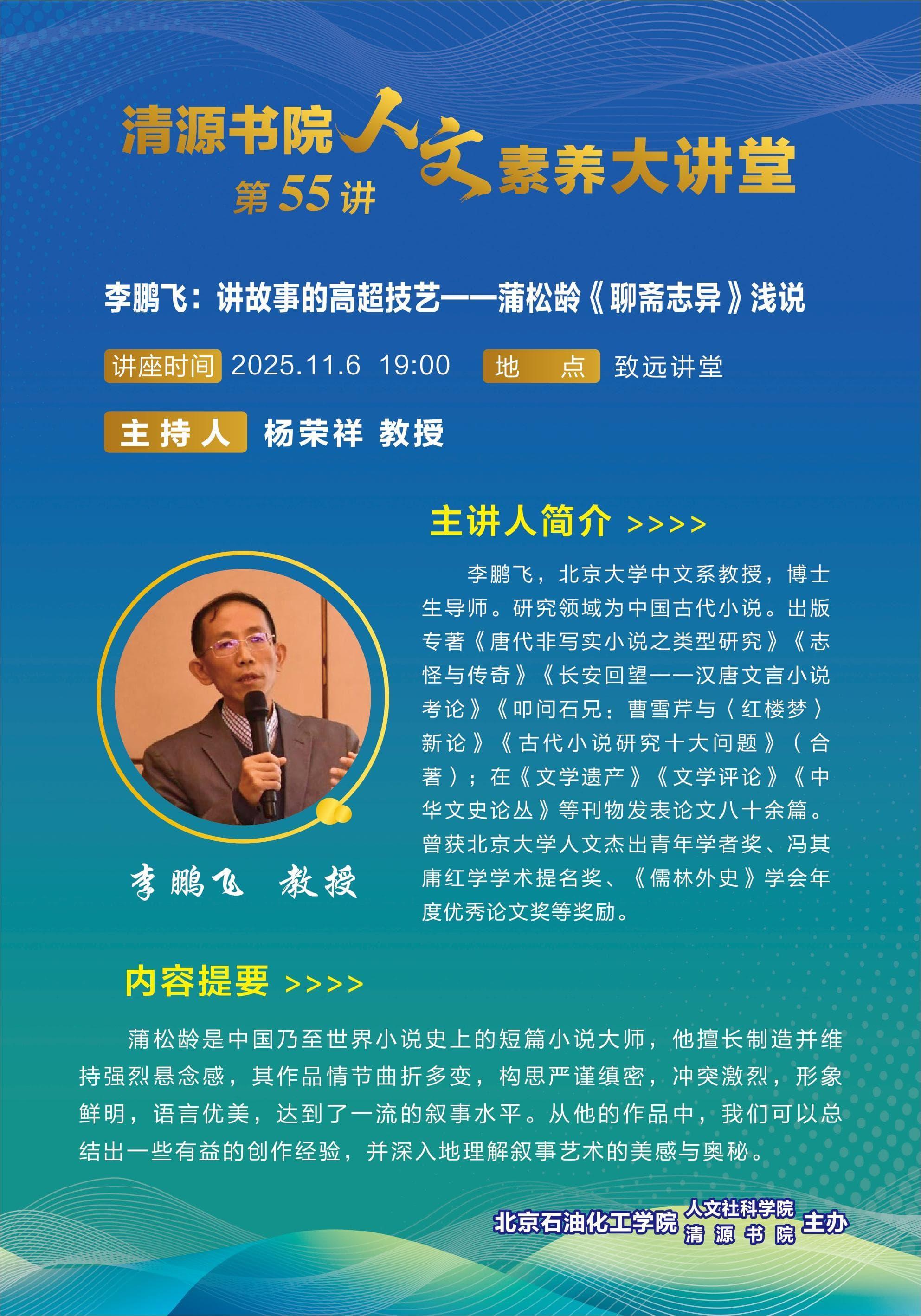 清源书院人文素养大讲堂第55讲——讲故事的高超技艺--蒲松龄《聊斋志异》浅说