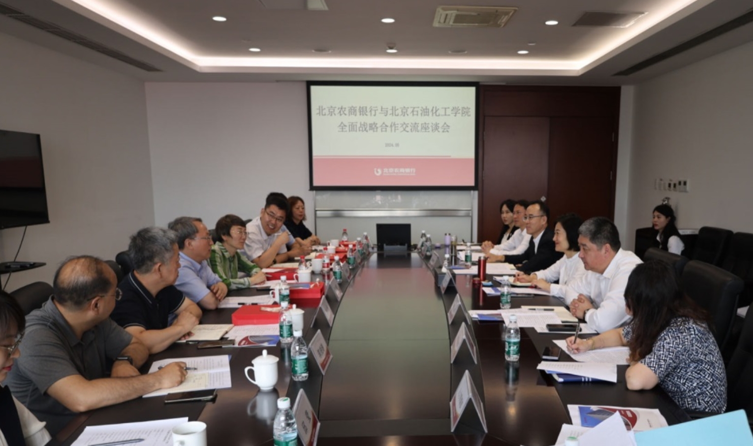 与会人员还参观了农商行总行营业厅,共同观看了北京石油化工学院《全力打造新时代首善之区工程师摇篮》宣传片与北京农商银行宣传片。