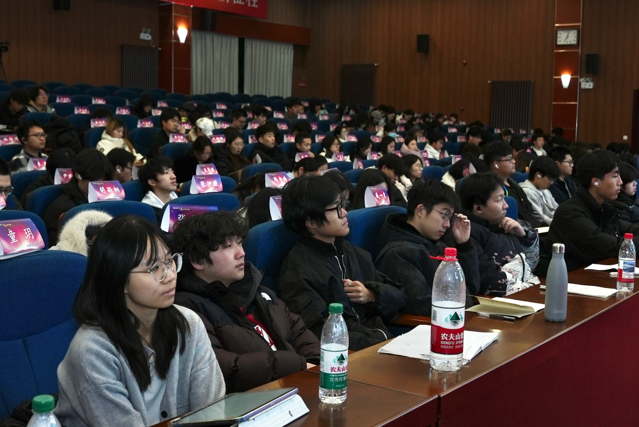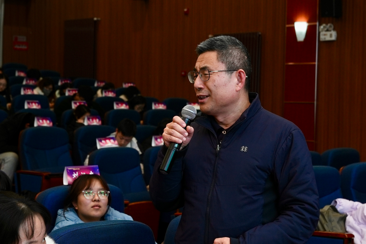 冯学会在讲座上给同学们分享了一段自己的温馨往事:早年赴京工作之际,每次离家前父母总会备好 “上车饺子”,即便清晨行程匆忙,他也坚持吃上一个,慰藉父母心意、回应牵挂。他勉励在场学子,踏实走好人生道路、不负父母养育深恩,便是对亲情最真挚的回报。