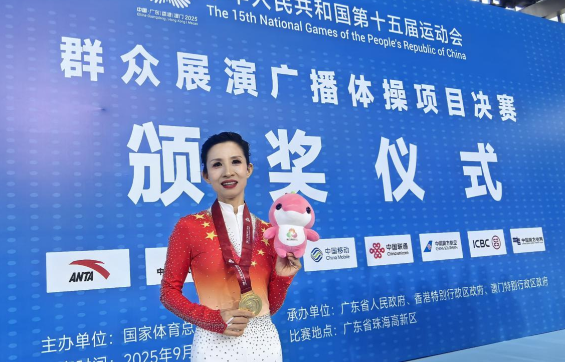 9月21日,第十五届全国运动会群众展演广播体操项目决赛在中山大学珠海校区体育馆圆满落幕。我校体育部教师邓彦青代表北京队参加第十五届全国运动会群众组广播操项目决赛,随北京代表队在激烈角逐中脱颖而出,夺得第九套广播体操团体赛冠军,为北京群众体育事业再添殊荣。