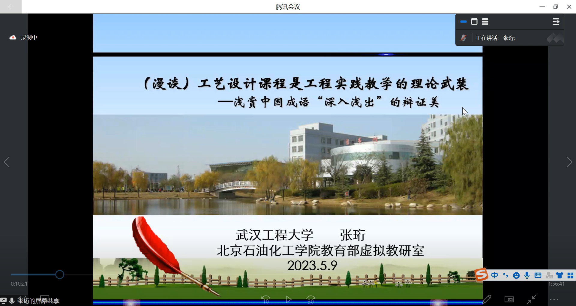 示范课由武汉工程大学张珩教授讲授,主题为《(漫谈)工艺设计课程是工程实践教学的理论武装——浅赏中国成语“深入浅出”的辩证美》。张珩深入浅出地介绍了制药工程工艺设计的主体内容,包括工艺流程设计的繁简与深浅;工艺流程设计、设备设计与选型、典型设备总装配图、车间设备布置设计、管道布置设计、制药用水、废气处理、废液处理的“深入浅出”;物料衡算、热量衡算的“浅出”。