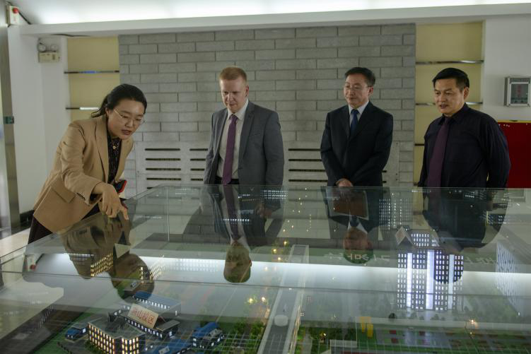 会后,亚考·哈利拉在我方人员陪同下参观了校园。首先通过沙盘模型了解校区概貌,然后步行游览主要校园设施和人文景观,在依次参观中,对我校图书馆的内部环境、馆藏资源、先进设备、管理服务等都印象深刻,对综合实验楼展出的“2022年大学生创新创业教育成果展”表现出浓厚兴趣。