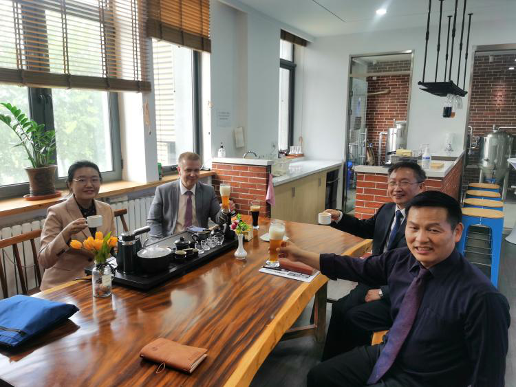 最后,亚考·哈利拉一行参观了人文社科学院教学实践基地,参观了啤酒酿造实验室、葡萄酒品鉴室、清源剧场演艺厅等,品尝了实验室自酿的啤酒,在交谈之中,亚考·哈利拉对我校建设发展和教学科研设施赞叹不已。