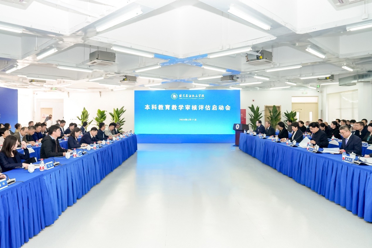 4月11日下午,北京石油化工学院在创源工程实训中心三楼召开本科教育教学审核评估线上评估启动会。会议采取线上线下相结合的方式进行。