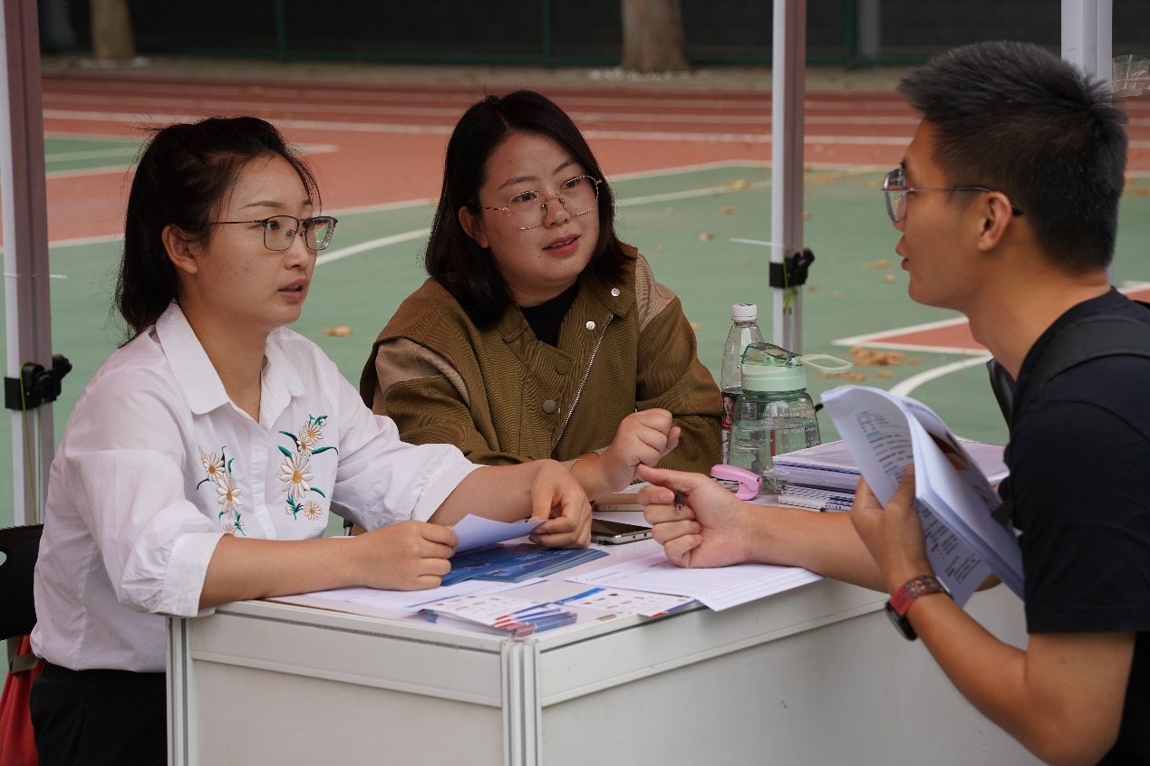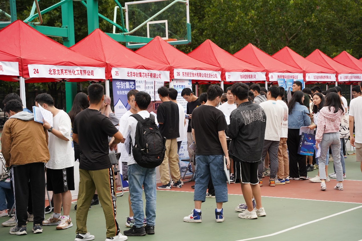 9月19日下午,我校2024届毕业生第一场校园招聘会在康庄校区体育场举行,中国石化集团北京燕山石油化工有限公司、北京市热力集团有限责任公司、北京同仁堂制药有限公司、中国银行股份有限公司北京市分行、北京外企人力资源服务有限公司、北京起重运输机械设计研究院有限公司、北京天科合达半导体股份有限公司等共50家用人单位带来1166个岗位需求现场招贤纳士,超过1400名本硕学生参加了招聘会。