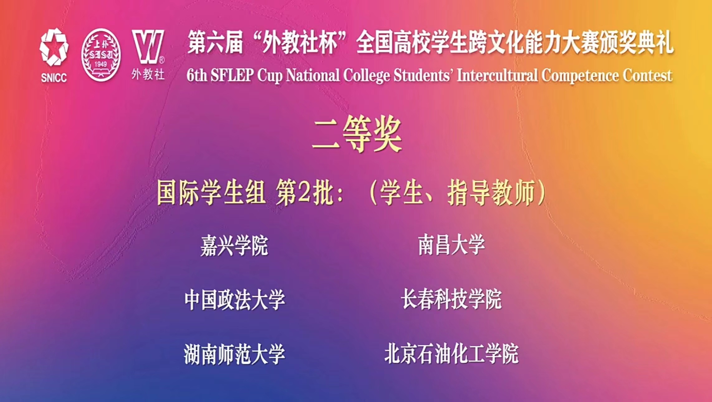 在第六届“外教社杯”全国高校学生跨文化能力大赛北京赛区比赛中,由我校致远学院樊继英副教授和苏晓娟副教授担任指导教师,自201王一凡、高201周李仪和国201盖伊组成的代表队获得北京赛区中国学生组二等奖,三位选手同时获得最佳风采奖;我校留学生获得北京赛区国际学生组一等奖;北京石油化工学院获得北京赛区优秀组织奖。