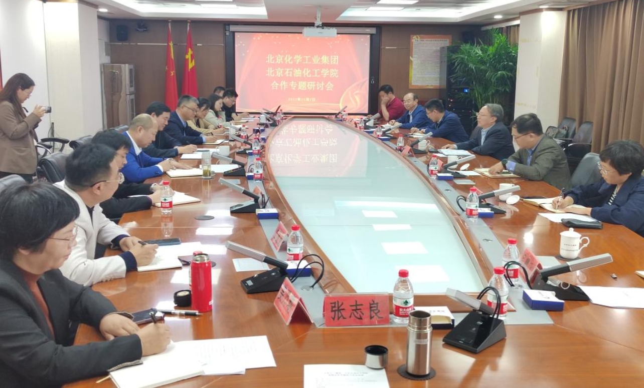 为深入推进校企合作,加快现代产业学院建设,11月2日,学校党委常委、副院长陈家庆带队赴北京化学工业集团有限责任公司(简称“北京化工集团”)开展校企战略合作专题研讨活动。北京化工集团党委书记、董事长陈宇接见我校一行人员,北京化工集团党委常委、副总经理孙绍刚和韩宝海,安全环保部、都市化工产业部、人力资源部、运营与信息化部等部门负责人及北京化工厂、华腾化工、华腾检测、华腾橡塑等下属企业主管领导参会。我校教务处、科技处、安全工程学院(继续教育学院)的相关负责同志参加了研讨会。