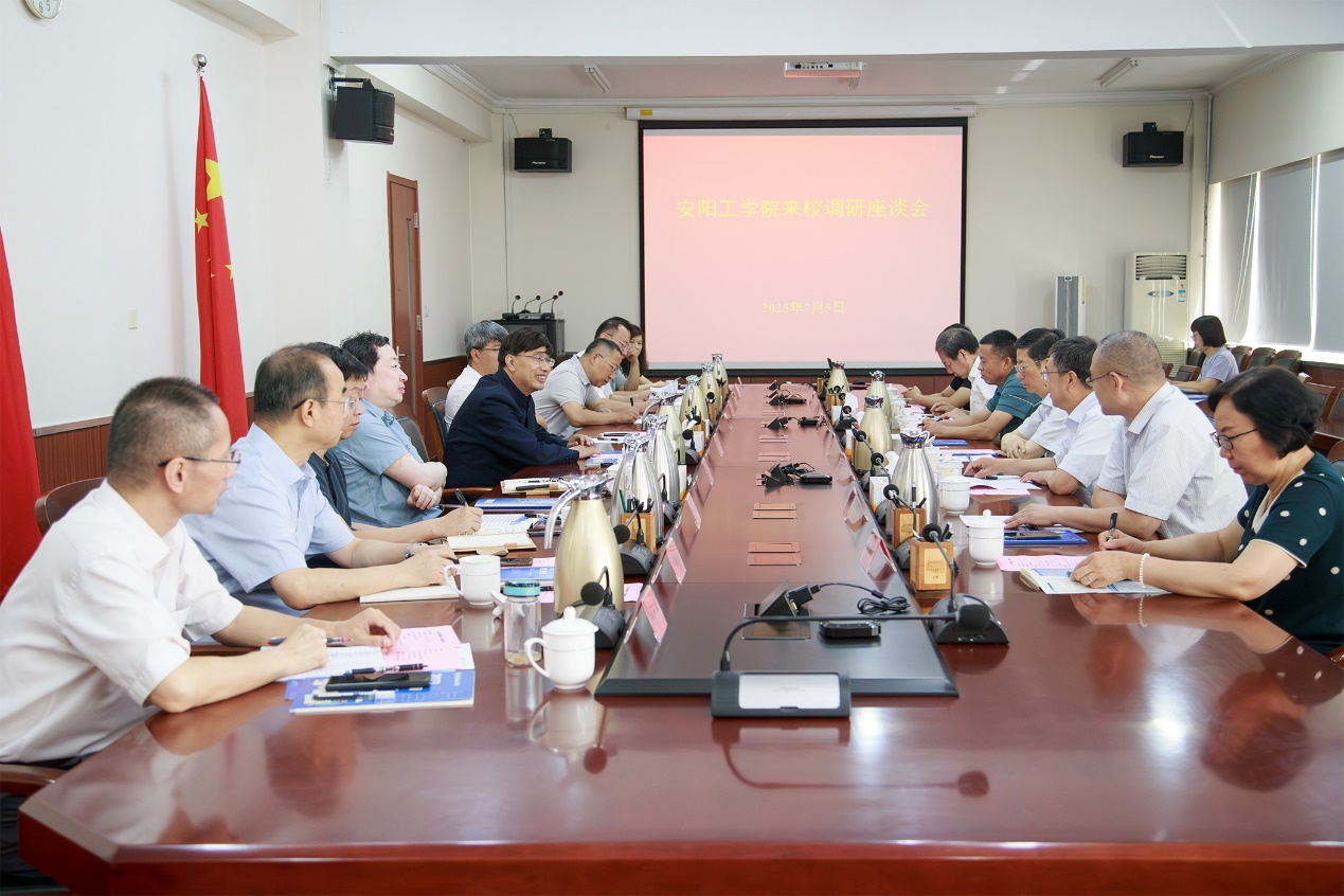 座谈会上,王伟介绍了我校师资队伍建设、学科建设转型以及促进研究生教育增量、提质、加速的主要做法和思考。靳海波介绍了我校近年来科研平台建设、科研项目、科研获奖等方面情况。安阳工学院万鹏杰介绍了学校的发展现状,办学特色以及推进硕士学位立项建设单位的有关情况。与会双方有关部门和教学院负责人围绕学科优势互补、研究生源基地建设和联合培养、科研项目合作以及导师遴选、学术交流等议题进行了认真的交流和讨论。