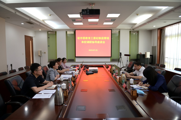 7月25日下午,市纪委市监委驻市委教育工委纪检监察组组长易帅东一行来我校调研。校党委书记刘颖,党委副书记冯学会,党委常委、纪委书记王昕参加会见,党政办公室、纪检监察办公室等相关单位人员参加了调研活动。