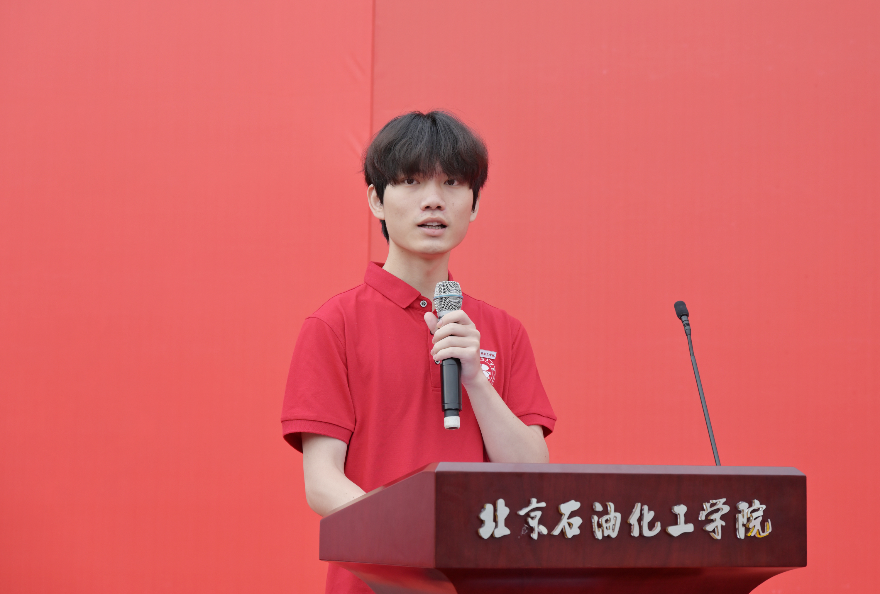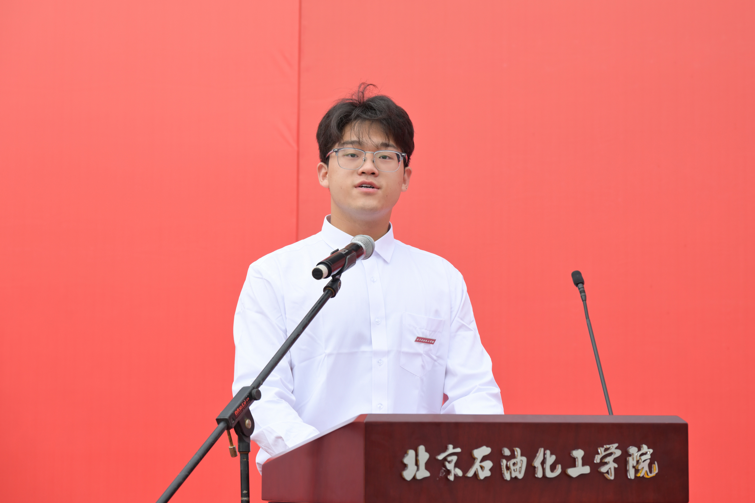 校学生会轮值主席、人文社科学院闫庆坤作为在校生代表发言。他寄语新同学要踔厉奋发,用青春谱写时代篇章;认真学习,用青春擘画人生旅途;知行合一,让青春绽放实践光彩。