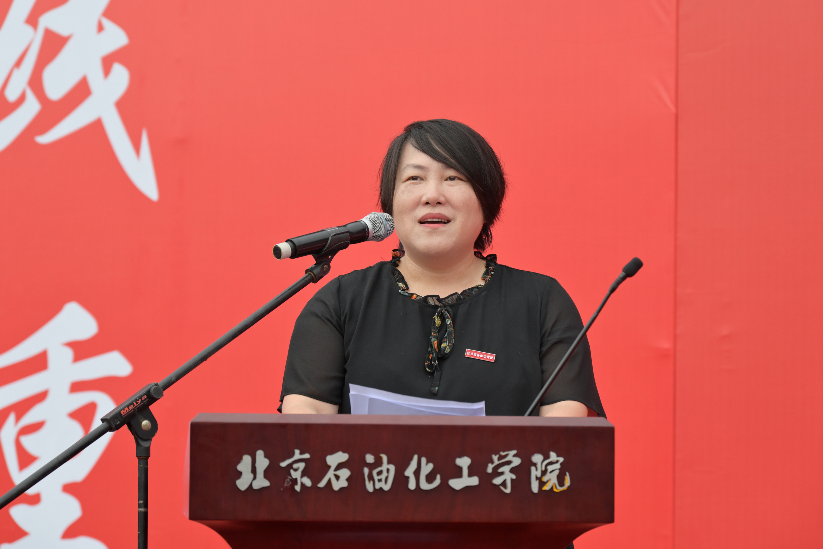 北京市青年教学名师、学校教务处副处长崔丽敏作为教师代表发言。她勉励广大同学迈入大学这一全新阶段,要树立新目标,学会学习、学会独立,诚实守信,并鼓励同学们勇敢地尝试新事物,挑战自我、超越自我。