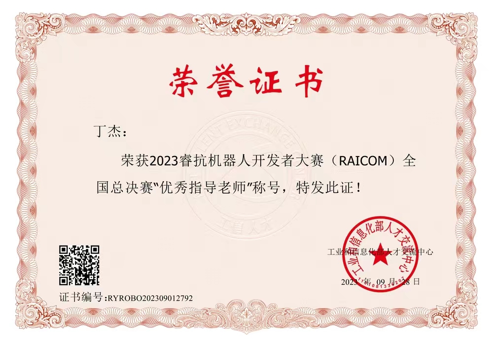 学院上下同心,学科竞赛成绩取得了历史突破。连续获得2项全国一等奖,分别是在海口举办的中国机器人及人工智能大赛和在上海举办的睿抗机器人开发者大赛,获得甲级比赛最高奖,在高水平竞赛中实现新突破。教师丁杰、许恩江、马丽梅分别获得优秀指导教师称号。