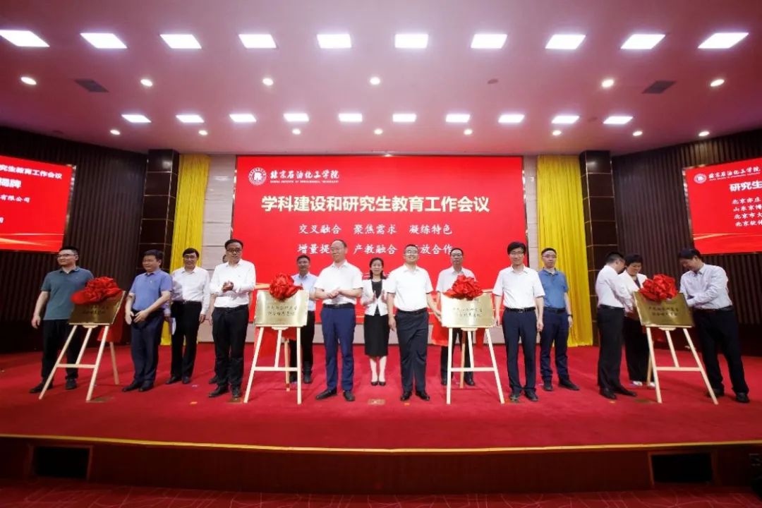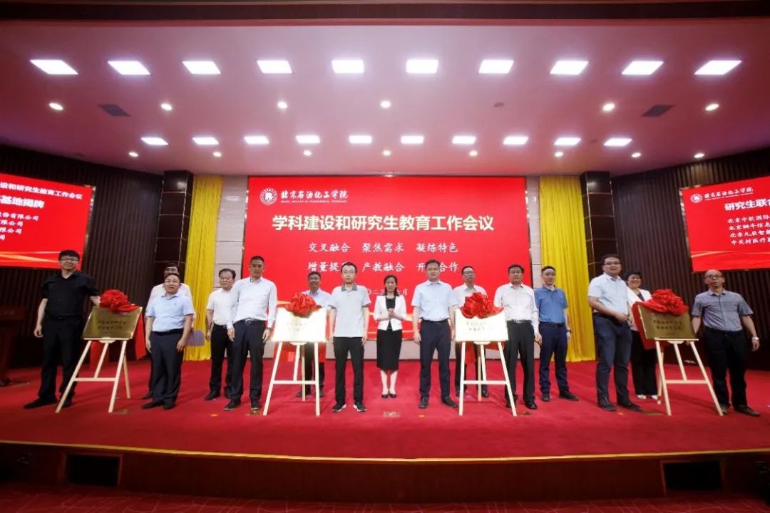 为培育建设高质量校外研究生联合培养基地,构建人才共育、项目共研、师资共享、基地共建、成果共有的长效育人机制,培养更多更好的具有创新意识、工程实践能力强的高层次应用型人才,促进研究生高质量就业,会上为北京亦庄国际生物医药投资管理有限公司、北京市大兴区生态环境局、北京铜牛信息科技股份有限公司、致同会计师事务所、北京九辰智能医疗设备有限公司、中关村医疗器械园有限公司、中国安全生产科学研究院等11家单位和相关学院进行了揭牌仪式。
