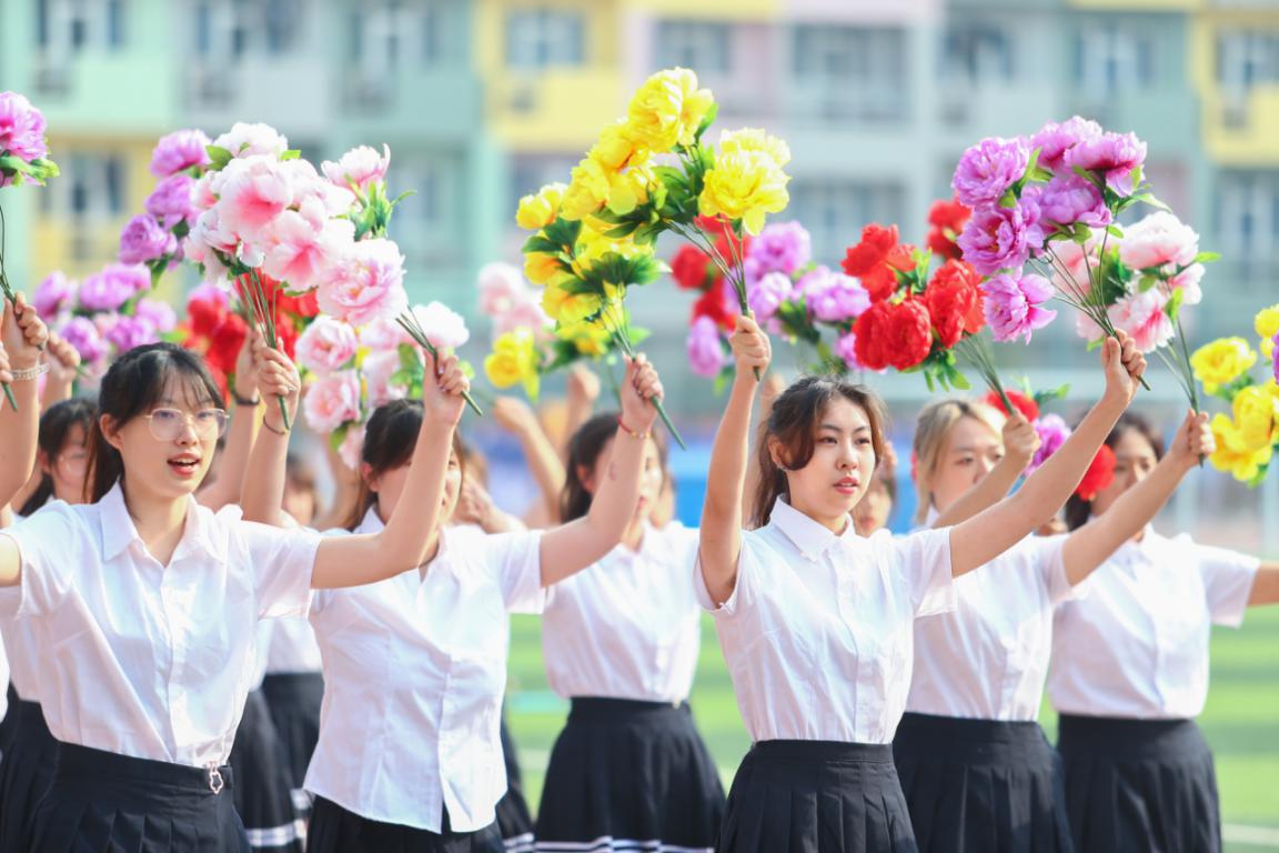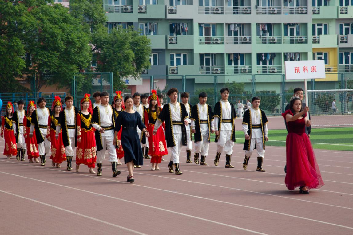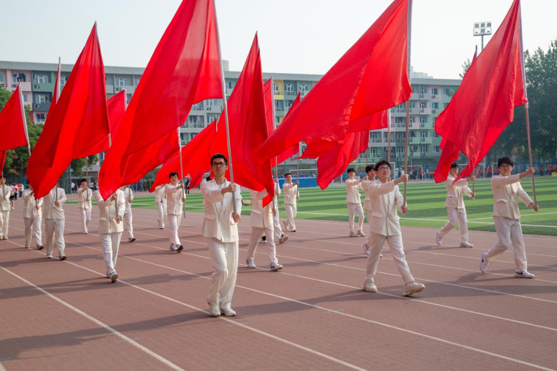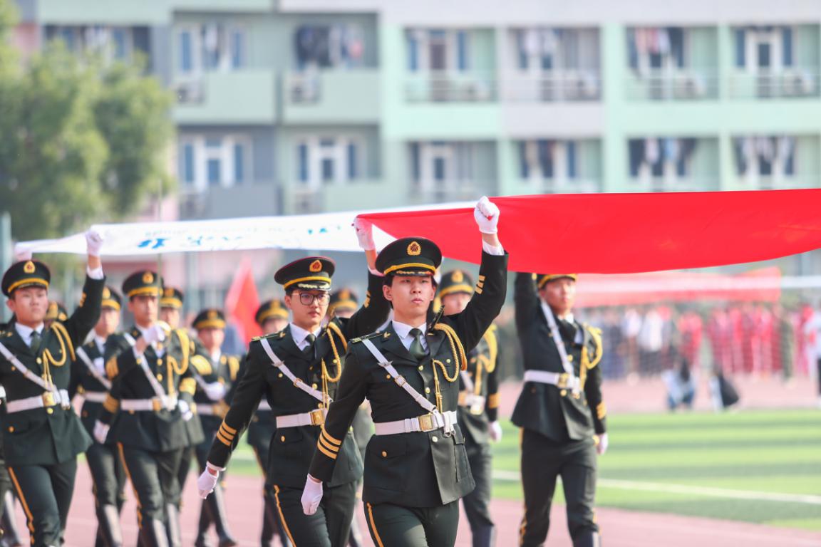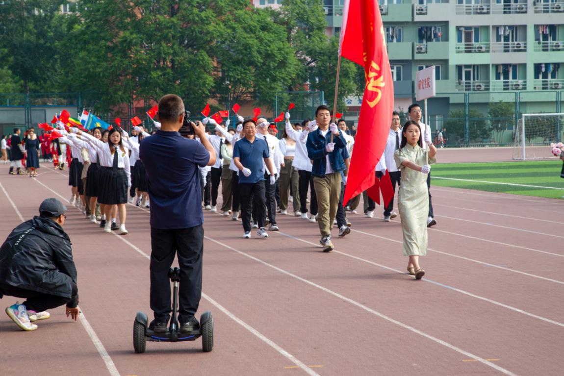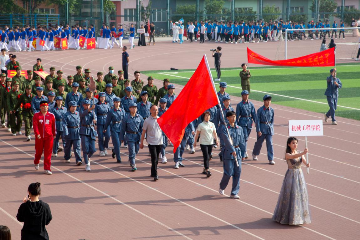伴随着昂扬的乐曲,国旗班、红旗方阵、花束队方阵以及各教学院系学生组成的方队先后入场。嘹亮的口号声,各具特色的方队表演,充分展现了北石化学子的精神风貌。