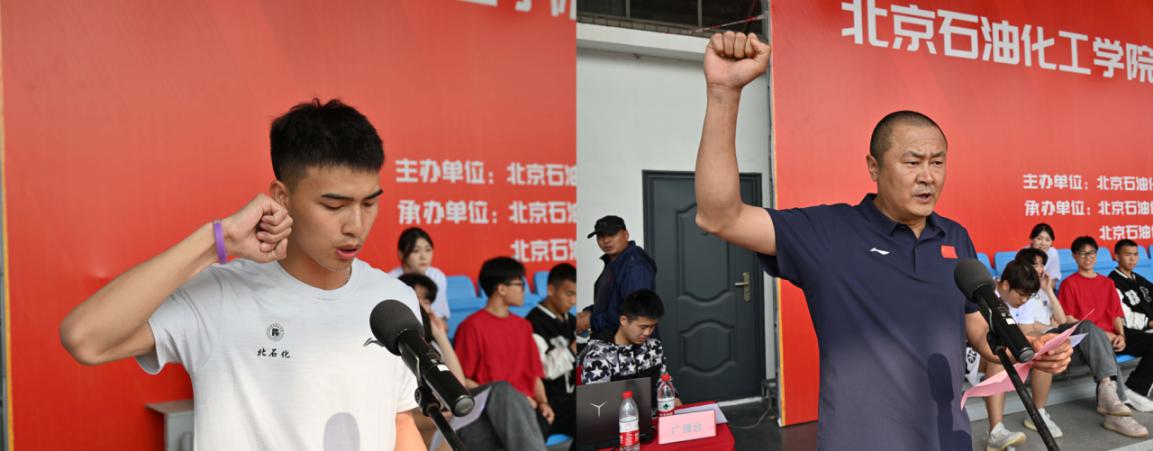 本科生黄忠和体育部教师逄涛分别代表运动员和裁判员进行宣誓,表示全体参赛同学和裁判员将坚决服从大会指挥,严格遵守比赛规则和赛场纪律,认真圆满完成各项比赛和裁判工作。