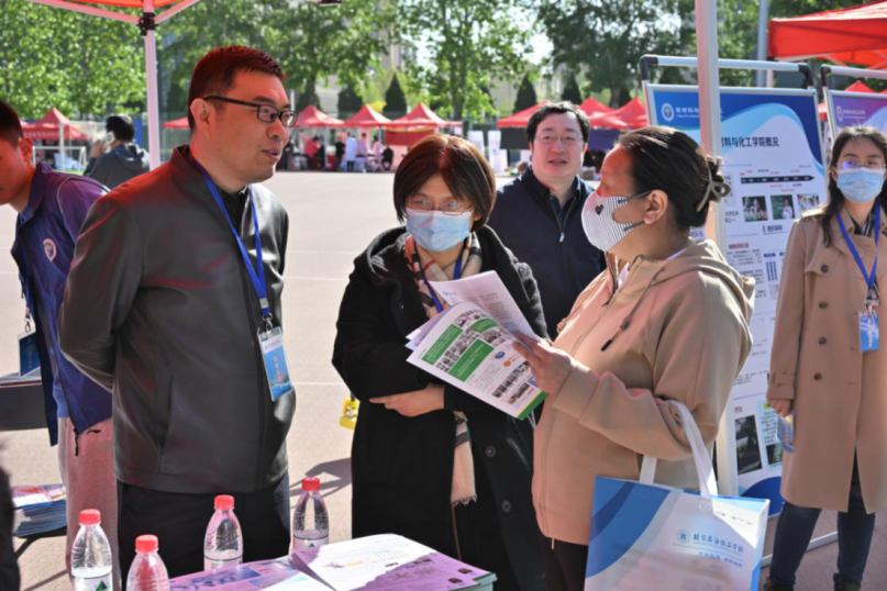 北京石油化工学院院长罗学科、党委副书记冯学会、党委常委、副院长陈家庆、靳海波来到活动现场,与前来咨询的考生、家长进行亲切交流。