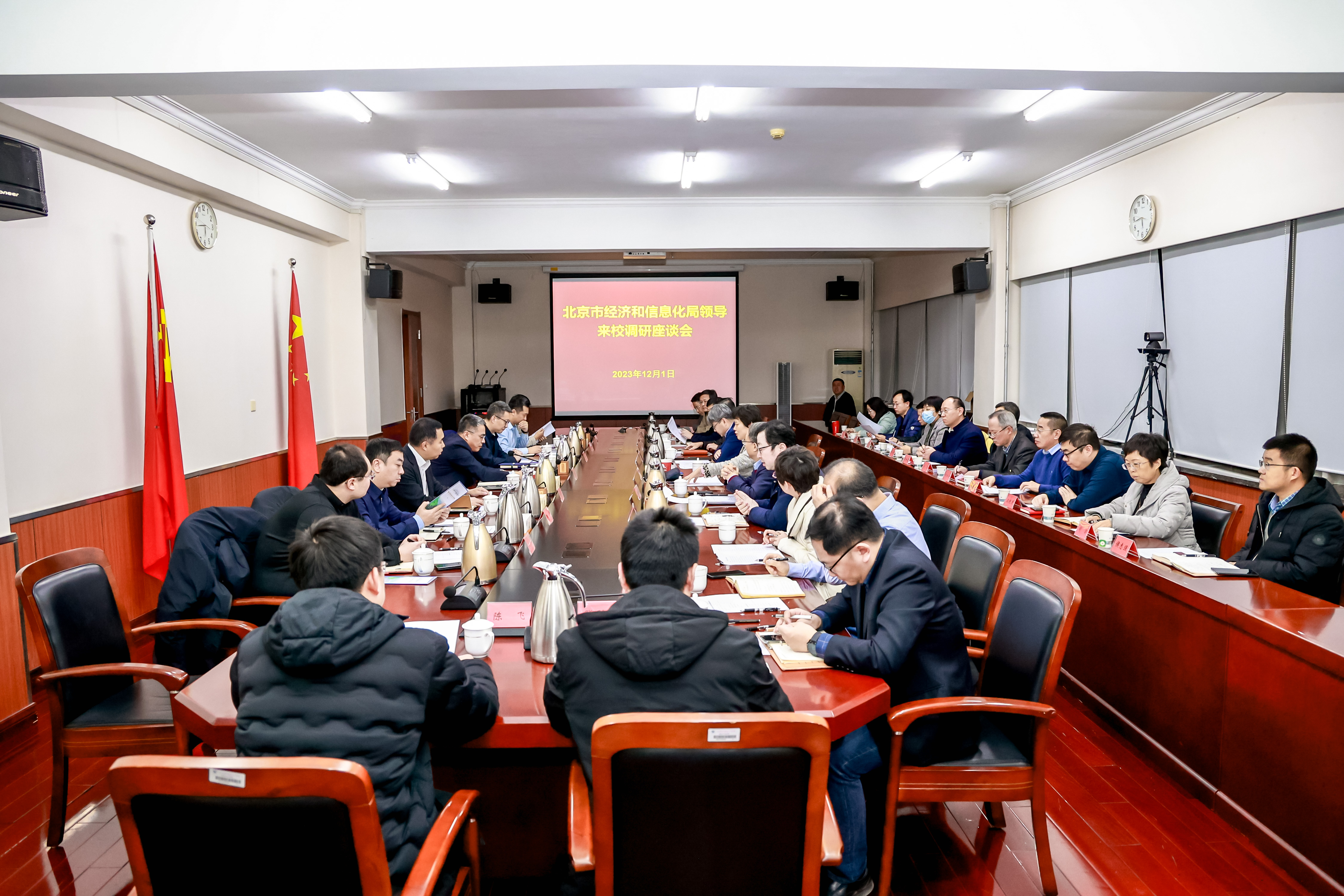 12月1日下午,北京市经济和信息化局党组书记、局长姜广智一行到我校调研座谈。我校党委书记刘颖,党委常委、副院长陈家庆、王伟、靳海波,院长助理丁福臣等校领导参加调研座谈。会议由刘颖同志主持。
