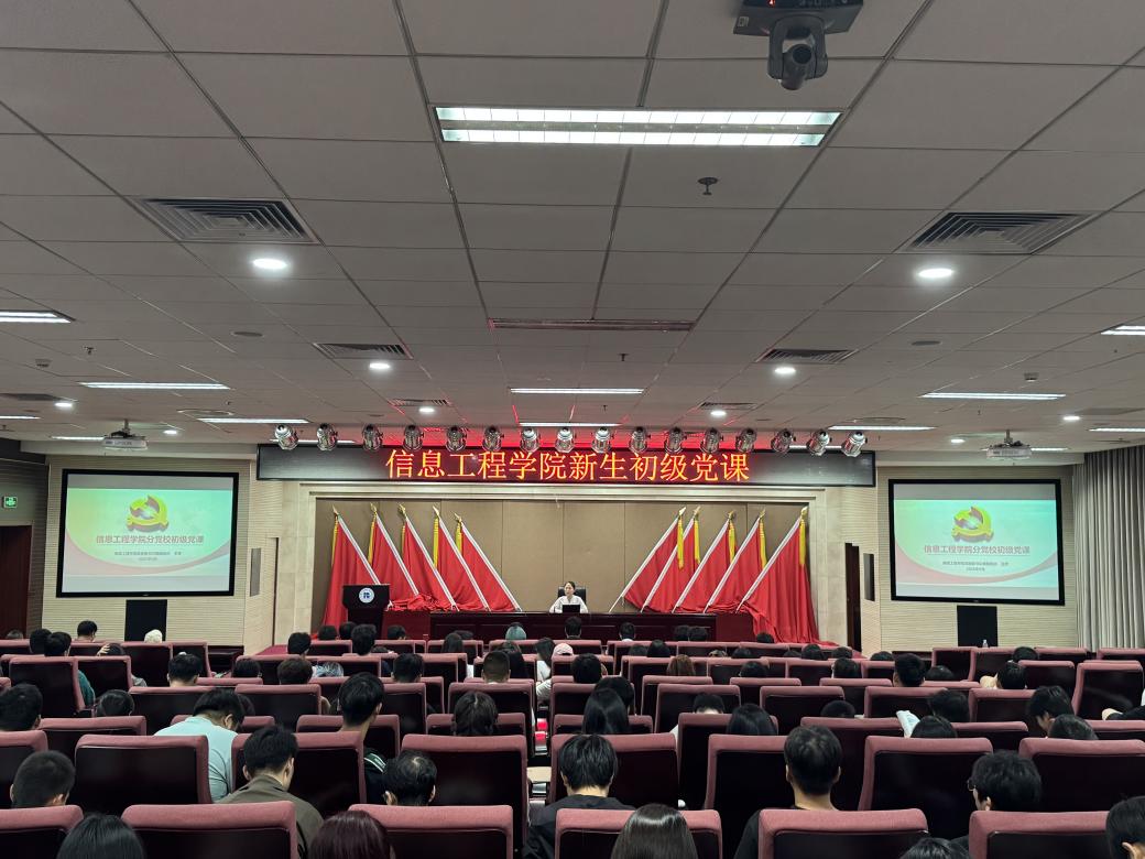 2025年9月23日和25日,信息工程学院党委在房山校区一教8楼报告厅和清源校区第二报告厅组织开展2025级新生初级党课培训。学院党委书记李绪娜、党委副书记王芳分别为参训新生讲授初级党课。本次培训是落实学校新生引航工程的重要举措,旨在强化对新生的思想引领,帮助新生坚定理想信念,激发其向党组织靠拢的主动性与积极性。