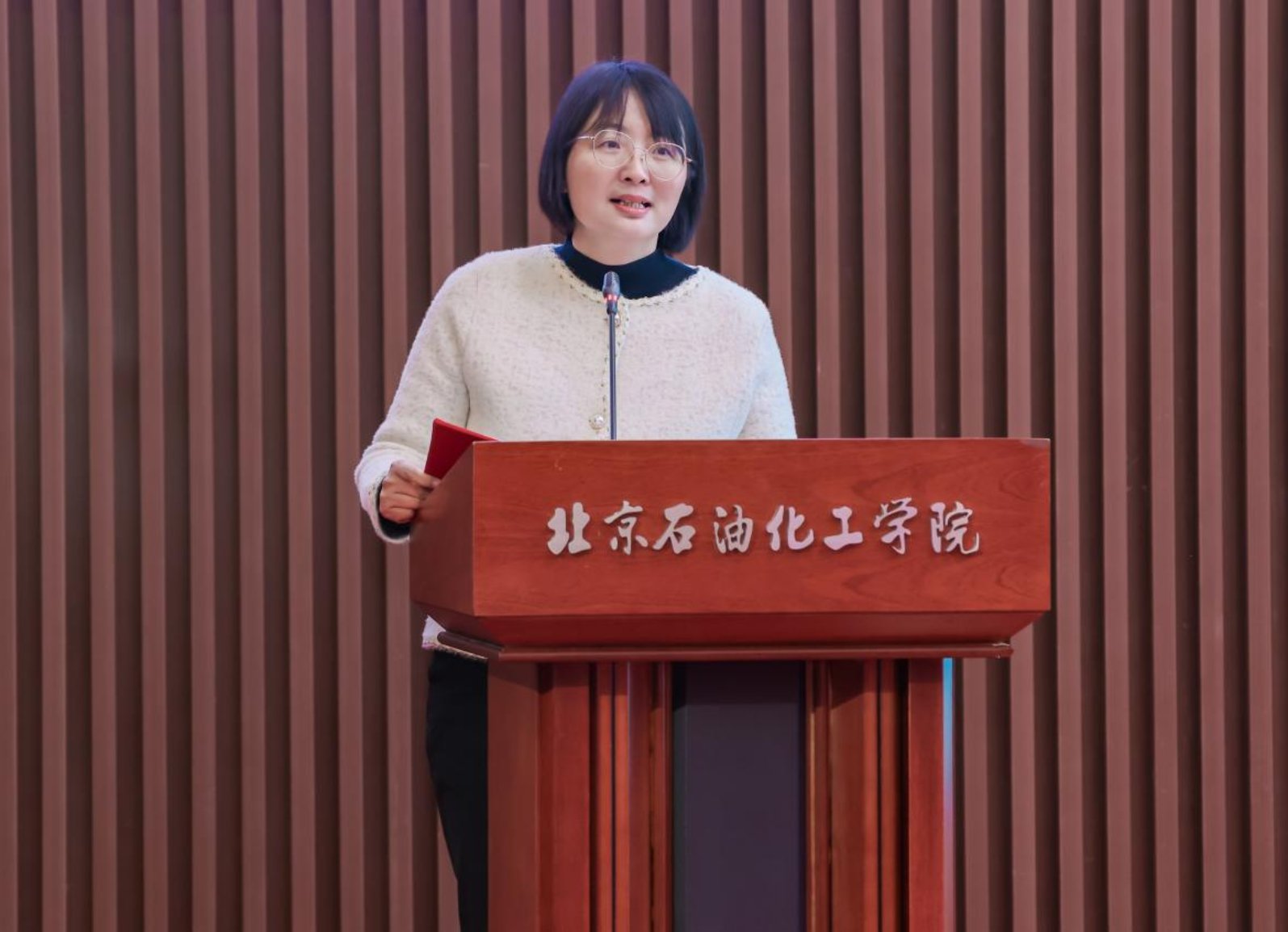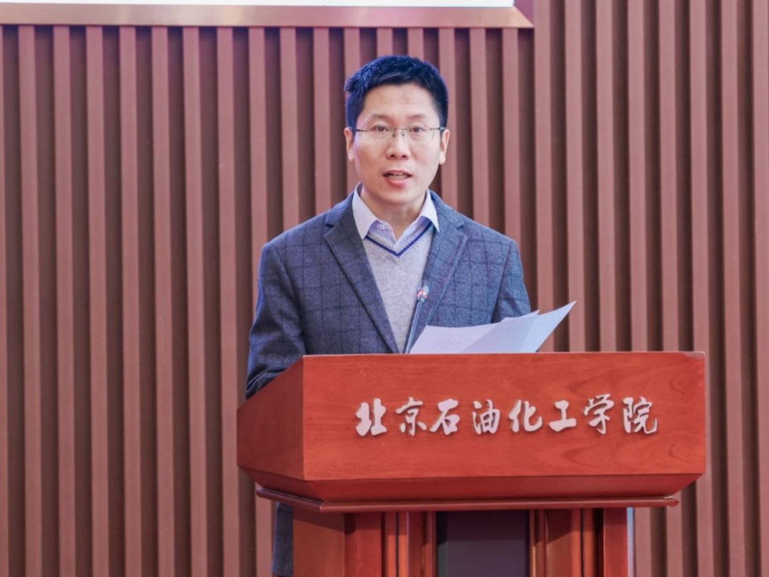 北京石油化工学院科技处处长张胜红代表学校致欢迎辞。他表示,推动高校优质资源向基础教育辐射,是高校服务国家战略、赋能区域发展的重要使命。本次活动是学校深入贯彻《关于加强新时代中小学科学教育工作的意见》精神,落实大兴区“1+N+X”科学教育协同机制的生动实践。他寄语同学们保持好奇心与探索欲,在近距离接触先进设备、互动交流中感受科学精神、习得科学方法,让此次大学之行成为科学梦想的新起点。