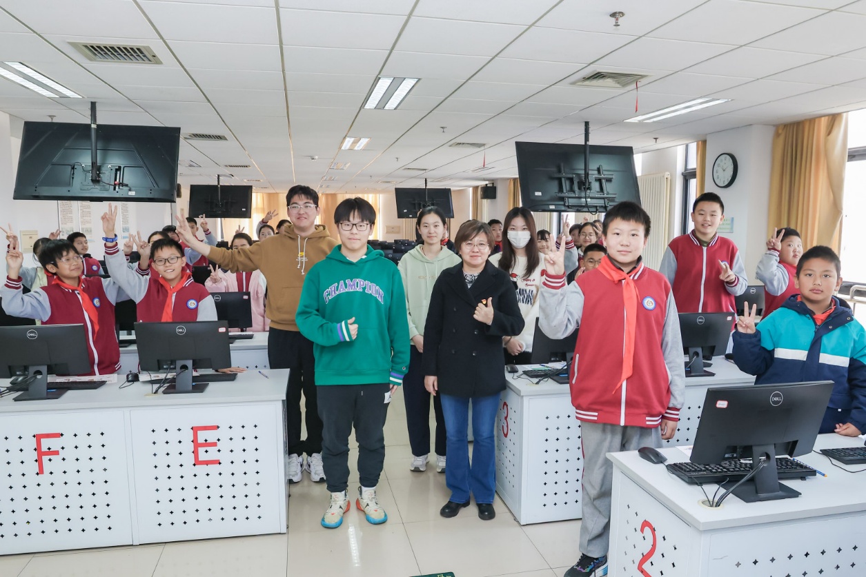 活动当天,在信息工程学院教师及学生志愿者的专业指导下,采育三小的同学们分为两组交替参与“跳跃游戏”和“闪电不怕”两门特色体验课程。