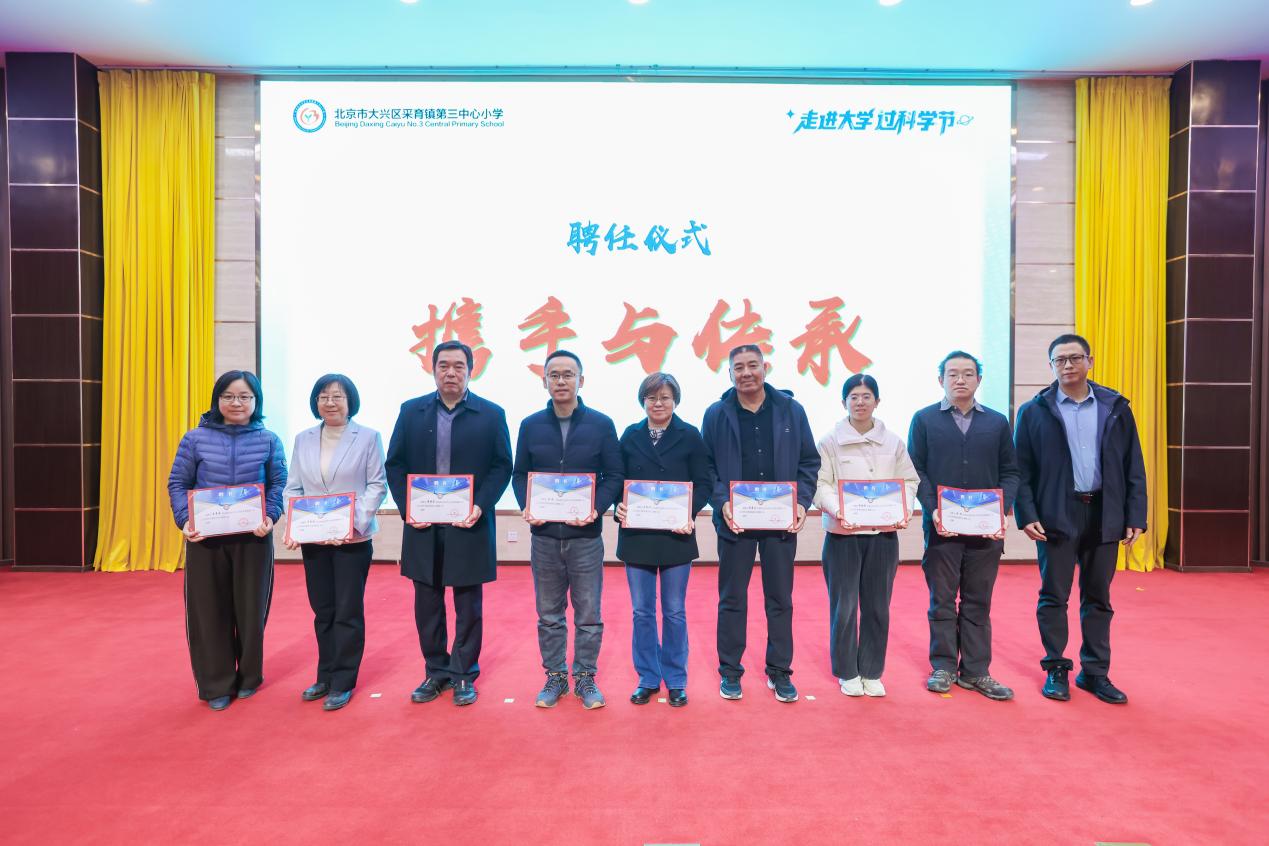 启动仪式上,特邀大兴区科协副主席段景林为采育三小科学副校长和科学辅导员颁发聘书。信息工程学院蓝波、王淑鸿两位教师受聘为采育三小“科学辅导员”,将为该校小学生提供长期科学教育指导,这标志着双方在协同育人、资源共享方面建立起常态化合作机制。