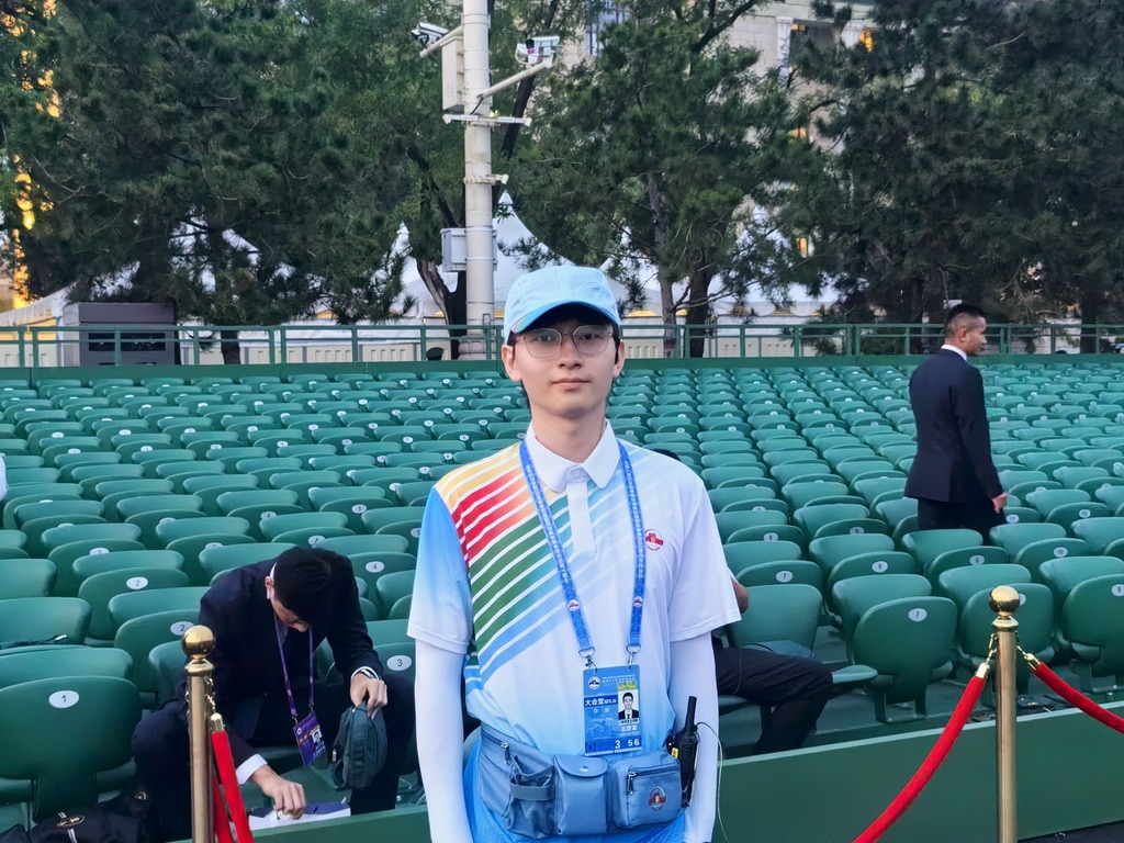 当清晨的第一缕阳光洒在天安门广场的观礼台上,我身着志愿者服装,站在这个熟悉而又特殊的位置上,心中涌起难以言喻的澎湃。作为纪念中国人民抗日战争暨世界反法西斯战争胜利80周年大会的志愿者,这是我第四次站在国家重大活动的服务岗位上。生逢其时,何其有幸,从新中国成立70周年庆祝活动到中国共产党成立100周年庆祝活动,从北京冬奥会到今天的抗战胜利80周年纪念大会,每一次服务都让我对“奉献”二字有着更深沉的理解。