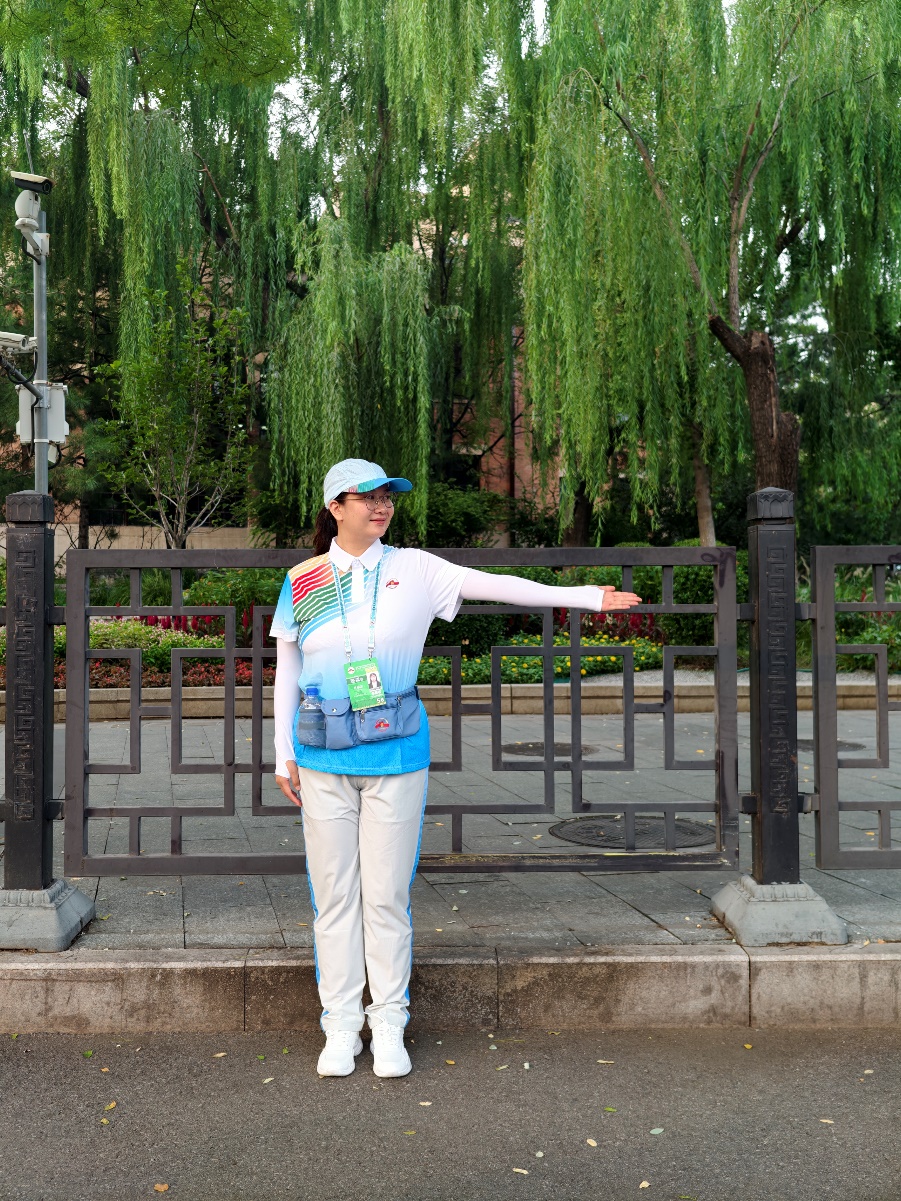 从前期紧锣密鼓的培训到活动当天的全情投入,每一个环节都让我深切感受到什么是责任与使命。我们引导岗位看似平凡,却是整个观众队伍入场有序行进、安全高效的重要一环。我们必须精准把握时间、熟悉每一个点位、保持最挺拔的姿态和最饱满的热情,用自己的行动确保观礼人员能第一时间到达他们的目的地。
