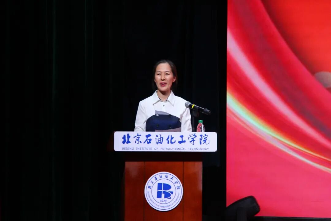 自动化系系主任唐建老师作为教师代表发言,她向全体新生表示热烈欢迎,并介绍了信息工程学院各专业领域的布局与优势。她强调,信息工程是推动产业智能化、绿色化转型的重要力量,鼓励新生夯实专业基础、促进跨界融合、勇担时代使命。学院全体教师将全力为同学们的成长成才提供指导与支持,助力大家在北石化书写精彩的大学生活。