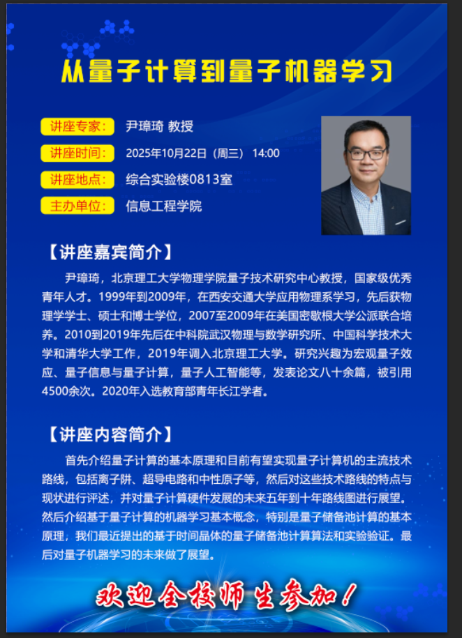信息工程学院举办《从量子计算到量子机器学习》讲座