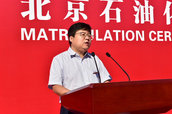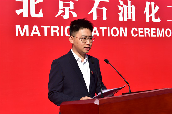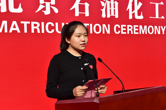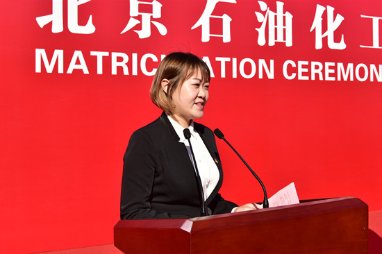 国际经济与贸易专业何璐作为本科生新生代表发言,表达了做新时代北石化人的决心和信心:独立自省,心存感恩;志存高远,明确目标;砥砺奋斗,担当时代责任!