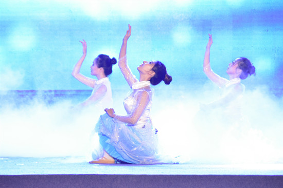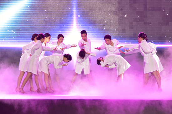 国标舞队用舞姿演绎了《不朽》,旋转、跳跃,展现着抗击疫情前线医务工作者们不畏艰险的姿态。