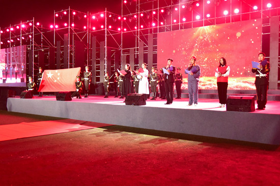 主持团和国旗班带来的诗朗诵《我在你身边》,歌颂了社会各界抗疫工作者不畏艰险、迎难而上、无私奉献的伟大精神。
