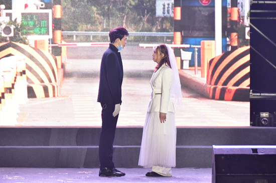 话剧团为我们带来了小品《非常婚礼》,以幽默诙谐的形式,将疫情期间工作者们的爱情与奉献展现在我们面前,使人肃然起敬。