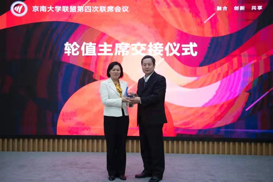 大会举行了京南大学联盟轮值主席单位交接仪式。校党委书记刘颖从北京印刷学院党委书记高锦宏手中接过了联盟水晶杯。根据京南大学联盟章程规定,我校成为京南大学联盟2020年轮值主席单位。