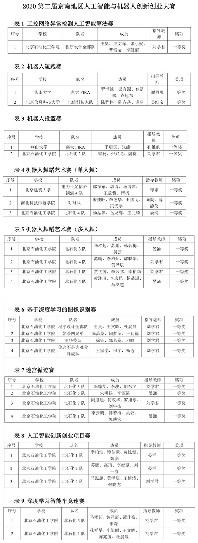2020年12月19-20日,第二届京南地区人工智能与机器人创新创业大赛举办,来自西北工业大学、燕山大学、天津工业大学、北京工业大学、北京信息科技大学、北京建筑大学、北京印刷学院等11所京内外高校的学生81支队伍近300人次队员参赛。学校共计150多人次参赛。